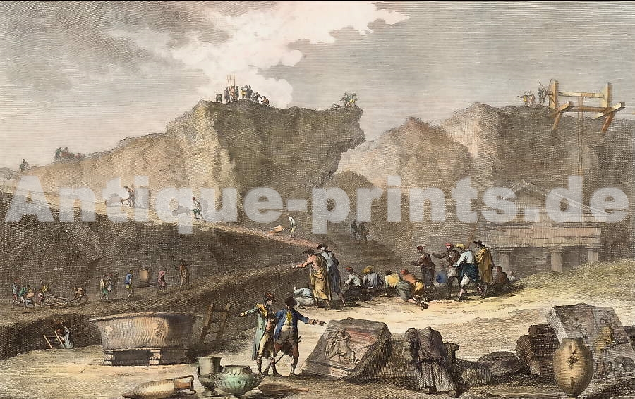 Herculaneum. Radierung gestochen von C. Guttenberg nach Robert. 1829. Sehr guter Zustand. Handkoloriert. 19x12cm. Mit Passepartout.