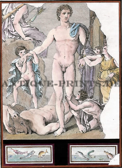 Mythologie. Kupferstich von Jean Mathieu und Isaac Briot nach Antonio Tempesta. 1619. Sehr guter Zustand. Handkoloriert. 11,5x10cm. Mit Passepartout.