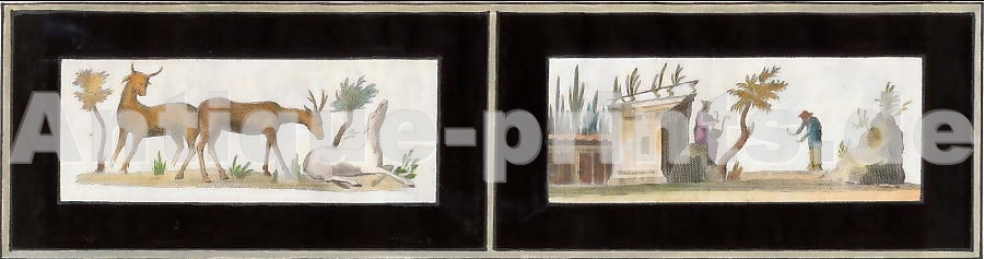 Italien, Italie, Italy, Gravure, Stich, Engraving, Italia, Herculanum, Ercolano, Herculaneum, Fresco, Fresque, Roman Painting, Peinture Romaine, Peinture Murale, Wall-Painting, Fresko, Wandgemälde, Villa, Cerf, Deer, Hirsch