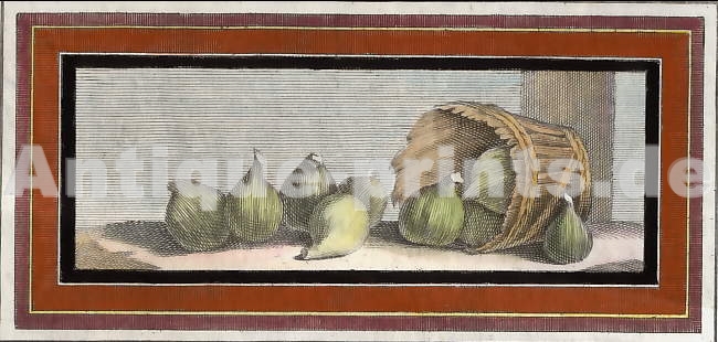 Italien, Italie, Italy, Gravure, Stich, Engraving, Italia, Herculanum, Ercolano, Herculaneum, Fresco, Fresque, Roman Painting, Peinture Romaine, Peinture Murale, Wall-Painting, Fresko, Wandgemälde, Nature Morte, Still Life, Stilles Leben, Fig, Figue, Feigen