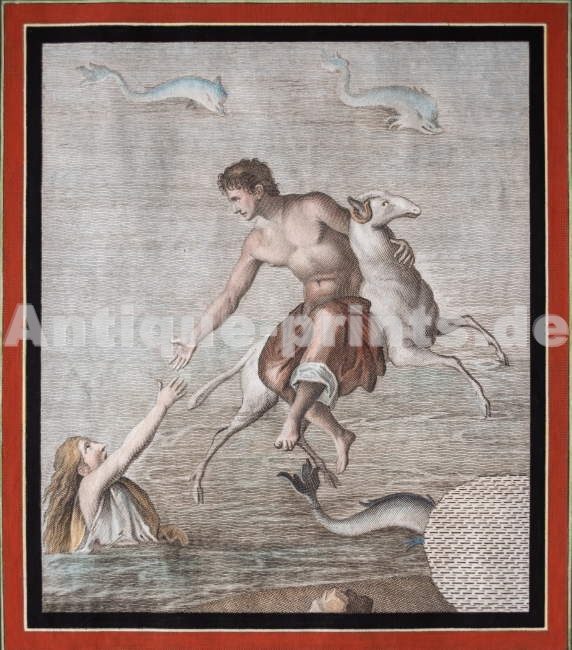 Mythologie. Radierung von N. de Launay nach N. Bertin. 1791. Papierschäden in den Rändern, teilweise am Rand der Darstellung. Handkoloriert. 30,5x27cm. Mit Passepartout.