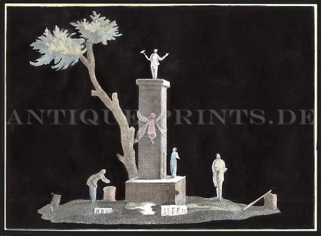 Pompeji. Kupferstich von C. Oratij nach G. Morghen. 1765. Sehr guter Zustand. Kein Titel. Text auf der Rückseite. Handkoloriert. 12,5x9,5cm. Mit Passepartout.