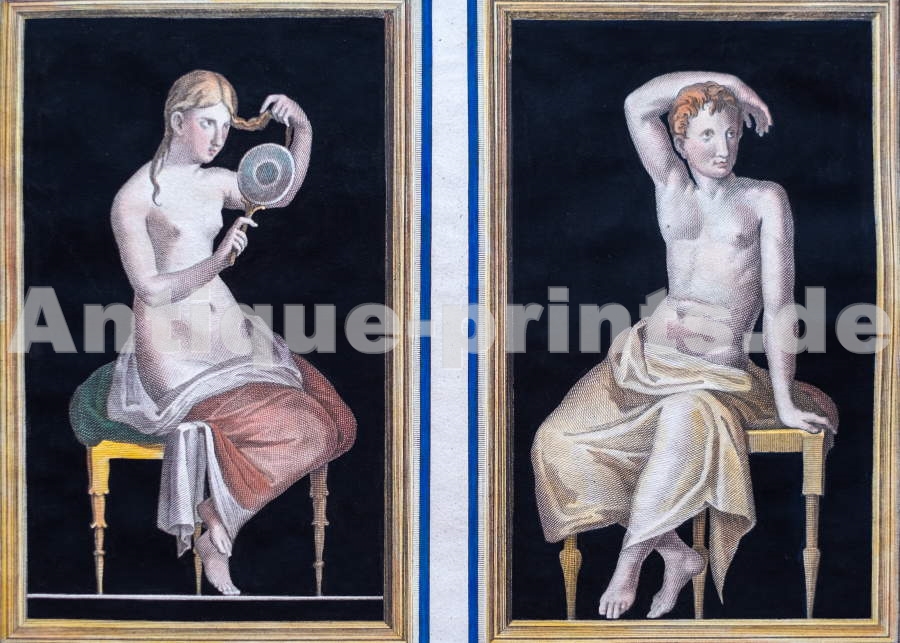 Italien, Italie, Italy, Gravure, Stich, Engraving, Italia, Herculanum, Ercolano, Herculaeum, Pompeii, Pompéi, Pompeji, Marchande D´Amours, Villa of Arianna, Cupids, Amorettenverkäuferin