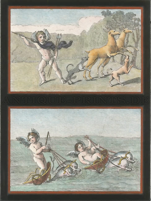 Pompeij. Kupferstich von C. Oratij nach N. Vanni. 1765. Sehr guter Zustand. Text auf der Rückseite. Handkoloriert. 21,5x6,5cm. Mit Passepartout.