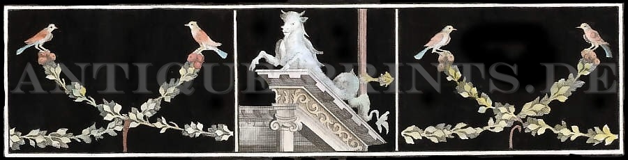 Pompeij. Kupferstich von C. Oratij nach G. Morghen. 1765. Sehr guter Zustand. Text auf der Rückseite. Handkoloriert. 21,5x5,5cm. Mit Passepartout.