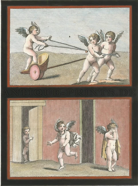 Italien, Italie, Italy, Gravure, Stich, Engraving, Italia, Pompeii, Pompei, Pompeij, Cupid, Chérubin, Amour, Putti, Casa Dei Cervi, House of the Deer, Maison Des Cerfs,