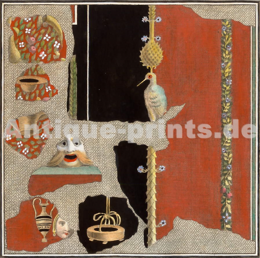 Pompéi. Gravure sur cuivre, gravée par G. Aloja d´après G. Morghen. 1779. Très bon état. Texte au verso. Aquarellée à la main. 21,5x8,5cm. Montée sous passe-partout.