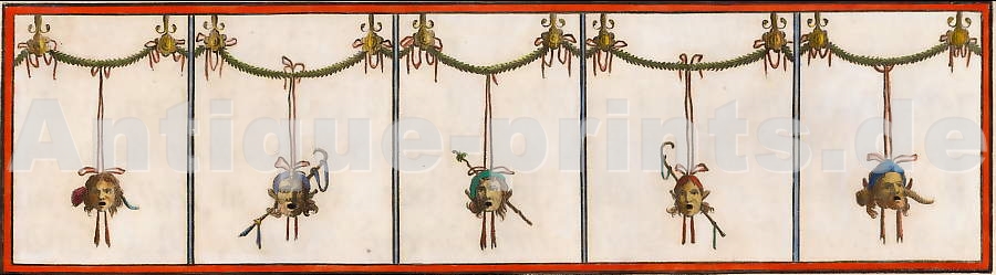 Pompéi. Gravure sur cuivre, gravée par N. Oriatij d´après G. Morghen. 1762. Très bon état. Texte au verso. Aquarellée et gouachée à la main. 21,5x7cm. Montée sous passe-partout.