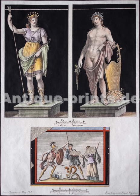 Italien, Italie, Italy, Gravure, Stich, Engraving, Italia, Herculanum, Ercolano, Herculaneum, Diane, Diana, Apollon, Apollo, Archémore, Archémoros, Opheltès, Archemorus, Archemoros, Fresco, Fresque, Roman Painting, Peinture Romaine, Peinture Murale, Wall-Painting, Fresko, Wandgemälde
