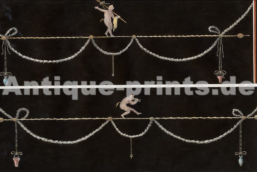 Pompéi. Gravure sur cuivre gravée par C. Oratij d´après N. Vanni. 1765. Très bon état. Texte au verso. Aquarellée et gouachée à la main. 21,5x6,5cm. Montée sous passe-partout.