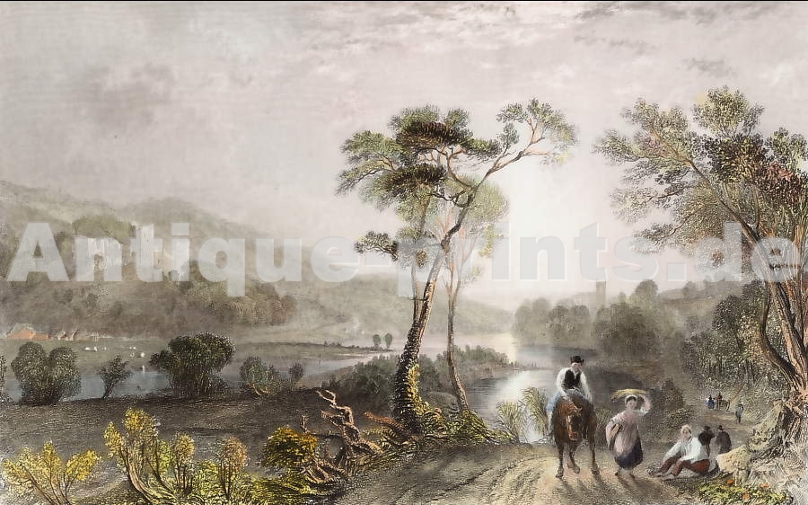England, Original steel engraving drawn by T. Allom, engraved by J. C. Bentley. 1844. Very good condition. Hand-coloured. 15,5x9,5cm. Matted.