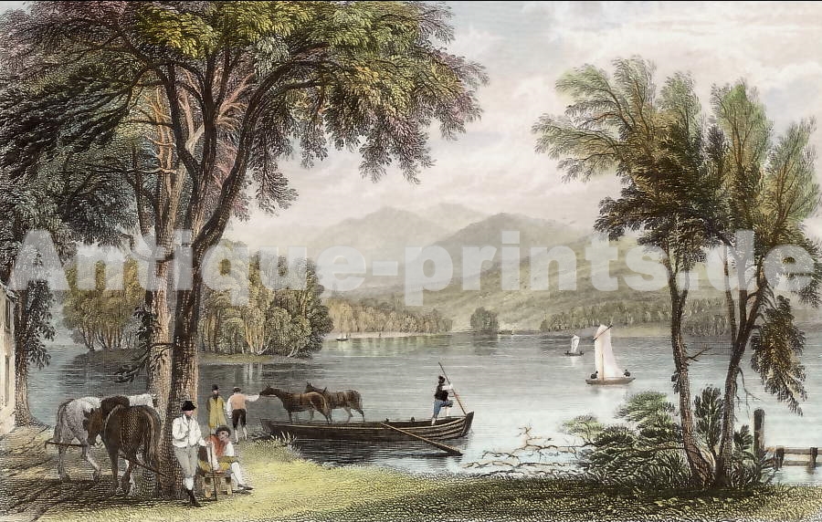England. Original steel engraving drawn by G. Pickering, engraved by C. Mottram. 1833. Very good condition. Hand-coloured. 15,5x9,5cm. Matted.