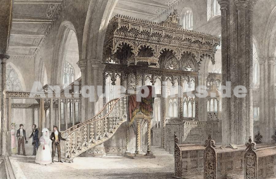 England. Original steel engraving drawn by T. H. Shepherd, engraved by W. Wallis. 1828. Very good condition. Hand-coloured. 14,5x8,5cm. Matted.