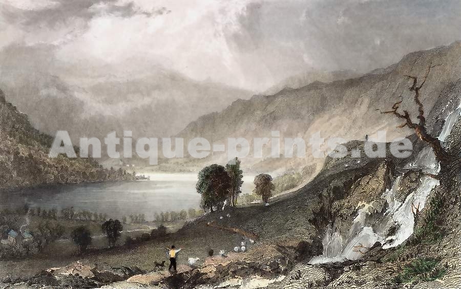 Scotland. Original wood engraving drawn by Sorrieu, engraved by Meunier. 1879. Foxing in the margins. Hand-coloured. 18,5x12,5cm. Matted.