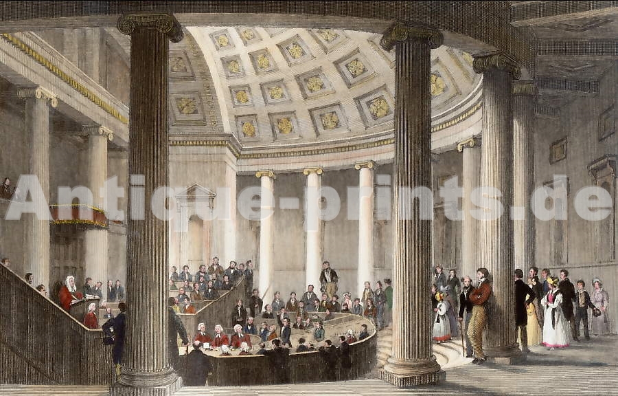 London. Original steel engraving, engraved by T. Barber after T. H. Shepherd. 1827. Very good condition. Hand-coloured. 14x9cm. Matted.