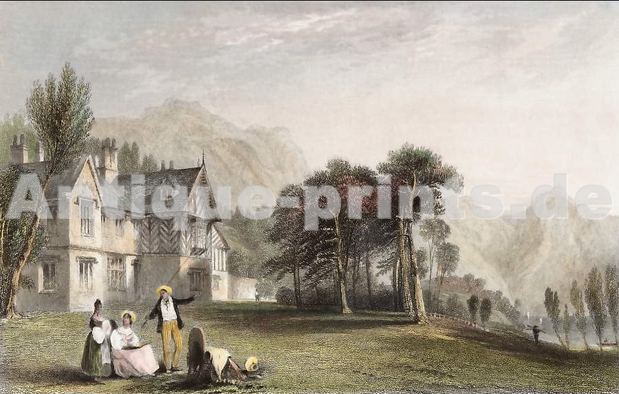 England. Original steel engraving, engraved by S. Bradshaw after T. Allom. 1835. Very good condition. Hand-coloured. 15,5x9,5cm. Matted.