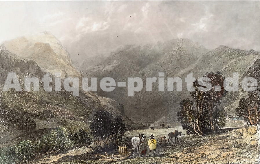 Scotland. Original steel engraving, engraved by J. C. Varrall after W. H. Bartlett. 1838. Good condition, small spot on the title. Hand-coloured. 17,5x11cm. Matted.