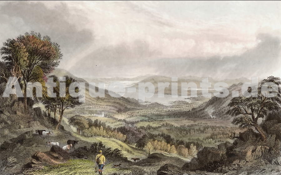 Scotland. Original steel engraving, engraved by T. Barber after T. Allom. 1836. Good condition. Hand-coloured. 17x11,5cm. Matted.