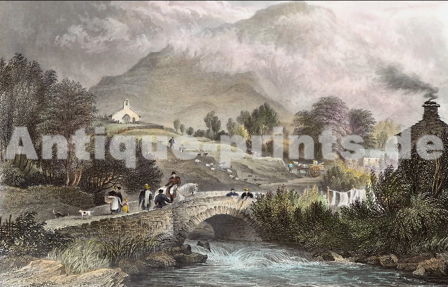 England. Original steel engraving, engraved by J. W. Lowry after T. Allom. 1835. Very good condition. Hand-coloured. 15,5x9,5cm. Matted.