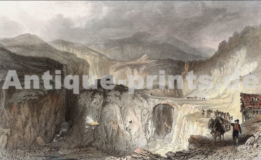 Switzerland. Original steel engraving drawn by W. Brockedon, engraved by R. Brandard. 1838. Very good condition. Hand-coloured. 19x14cm. Matted.