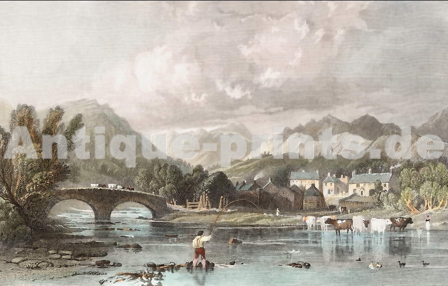 Switzerland. Original steel engraving, engraved by J. B. Allen after W. H. Bartlett. 1835. Very good condition. Hand-coloured. 18x12cm. Matted.