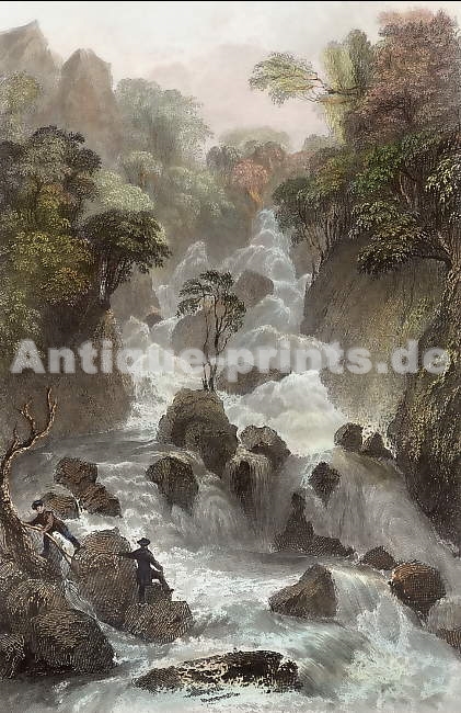 Netherlands. Original steel engraving, engraved by T. A. Prior after J. van Ruysdael. 1863. Very good condition. Hand-coloured. 25x18cm. Matted.