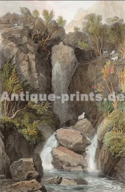 Scotland. Original wood engraving, engraved by C. Laplante after P. Langlois. 1879. Light foxing in the margins. Hand-coloured. 19x13cm. Matted.