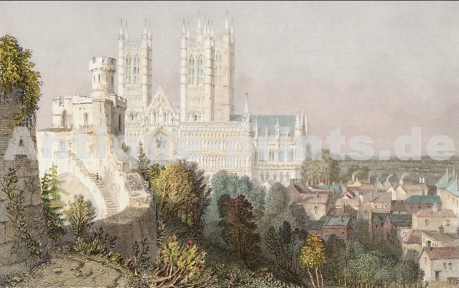England. Original steel engraving, engraved by H. Cook after F. Parsons. 1833. Very good condition. Hand-coloured. 11,5x9cm. Matted.