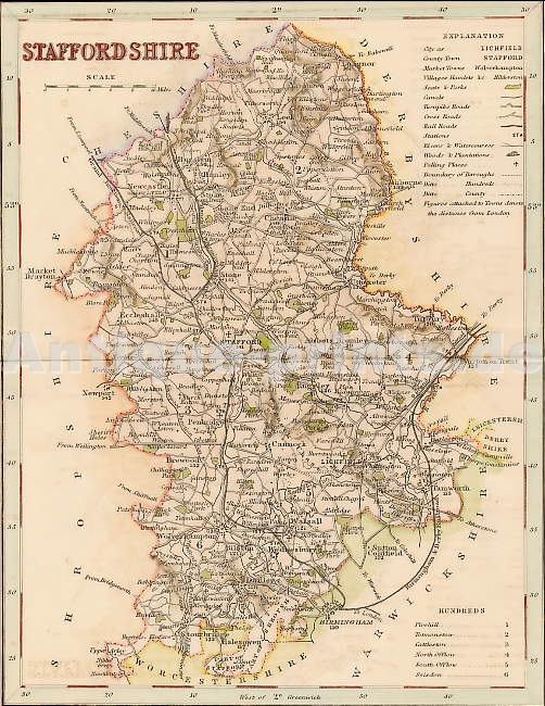 Engraving, Stich, Gravure, Map, Carte, Karte, England, Angleterre, Staffordshire