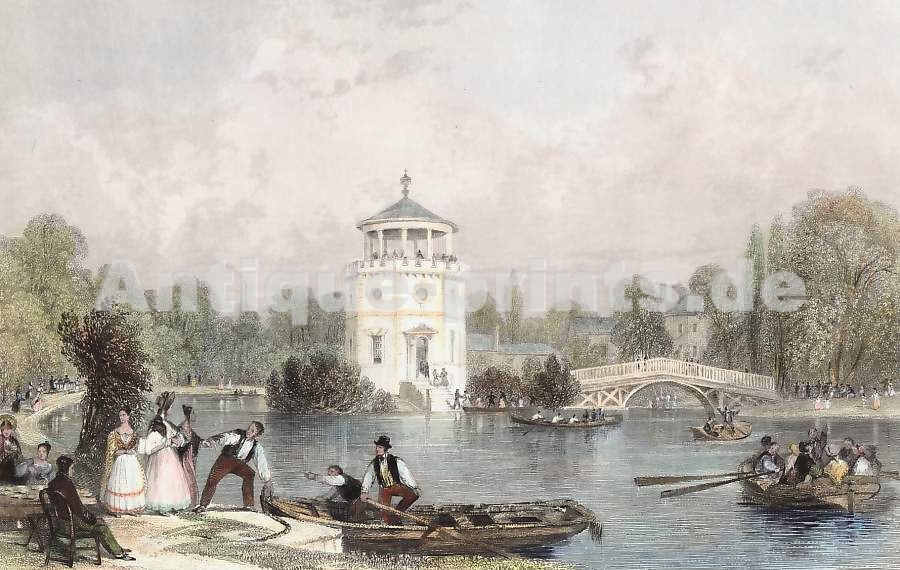 Paris. Steel engraving "from original drawings taken under the direction of A. Pugin, the engraving executed under the superintendence of C. Heath". 1831. Good condition. No title on the plate, on chine appliqué. Hand-coloured. 14x8cm. Matted.