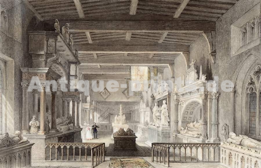 England. Original steel engraving drawn by W. H. Bartlett, engraved by H. Adlard. 1833. Good condition. Hand-coloured. 16x10cm. Matted.