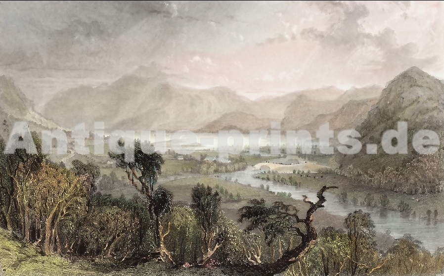 Scotland. Original steel engraving, engraved by W. Miller after D. G. Hill. 1840. Very good condition. Hand-coloured. 13,5x9cm. Matted.