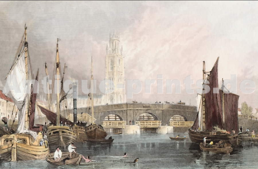 England. Original steel engraving, engraved by S. Lacey after T. Allom. 1834. Very good condition. Hand-coloured. 15x9cm. Matted.