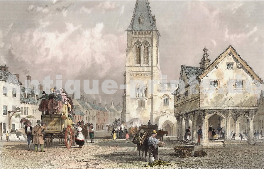 England. Original steel engraving drawn by W. Turner, engraved by W. Miller. 1864. Very good condition. Hand-coloured. 14x8cm. Matted.