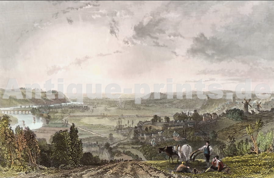 Paris. Original copper engraving, engraved by Réville after C. Civeton. 1825. Good condition. Hand-coloured. 11,5x7,5cm. Matted.