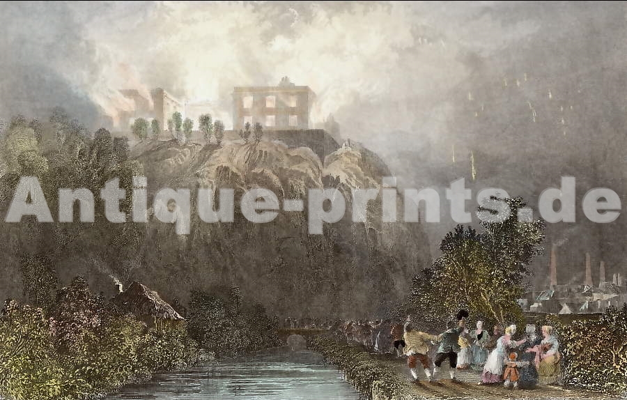 England. Original steel engraving drawn by W. H. Bartlett, engraved by M. J. Starling. 1830. Very good condition. Hand-coloured. 15x9,5cm. Matted.