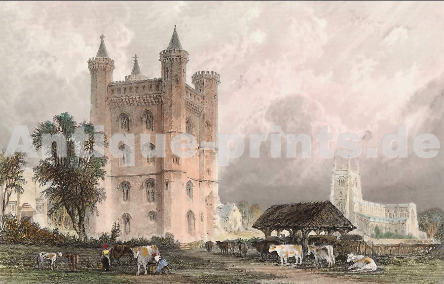 England. Original steel engraving, engraved by R. Sands after T. Allom. 1837. Very good condition. Hand-coloured. 15x9,5cm. Matted.