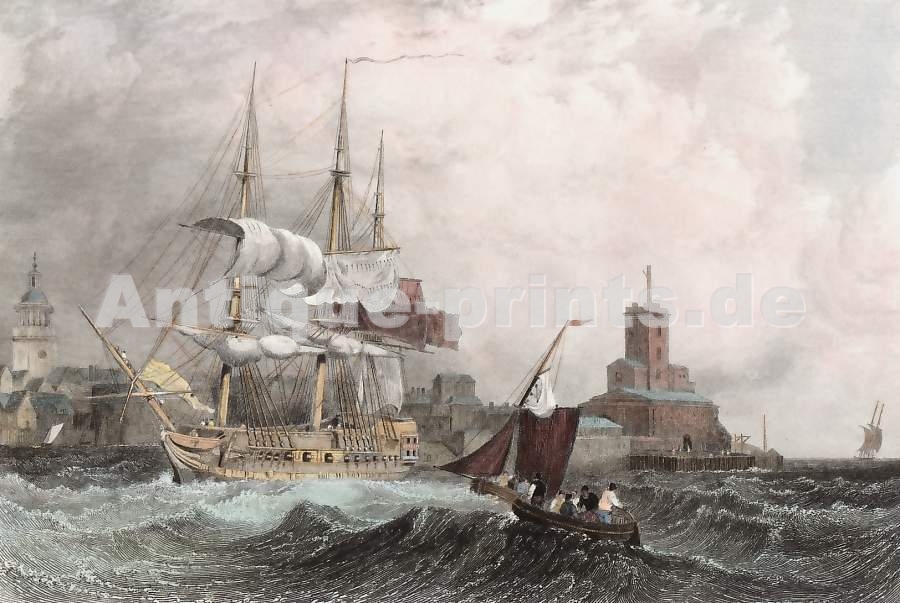 England. Original steel engraving, engraved by E. Finden after W. Westall. 1829. Very good condition. Hand-coloured. 14,5x8,5cm. Matted.