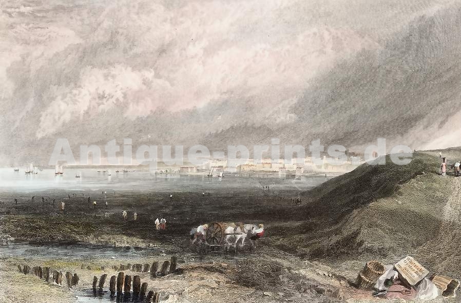 Isle of Wight. Original steel engraving, drawn and engraved by T. Barber. 1834. Very good condition. Hand-coloured. 15x9cm. Matted.