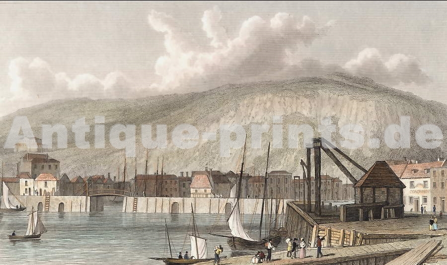 England. Original steel engraving, engraved by E. Finden after C. Stanfield. 1834. Very good condition. Hand-coloured. 13x9cm. Matted.