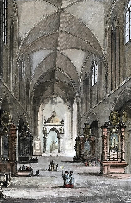 Gravure, Stich, Engraving, Poland, Pologne, Polen, Krakow, Cracow, Cracau, Cracovie, Krakovie, Krakow, Cathedral, Dom,
