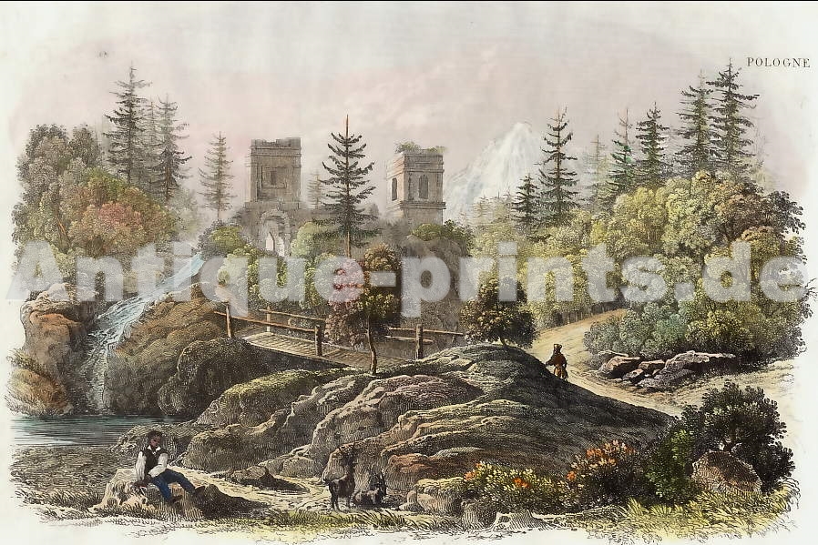 Pologne. Gravure sur acier, gravée par Huber d´après T. Blätterbauer. 1885. Très bon état. Aquarellée à la main. 16x10cm. Montée sous passe-partout.