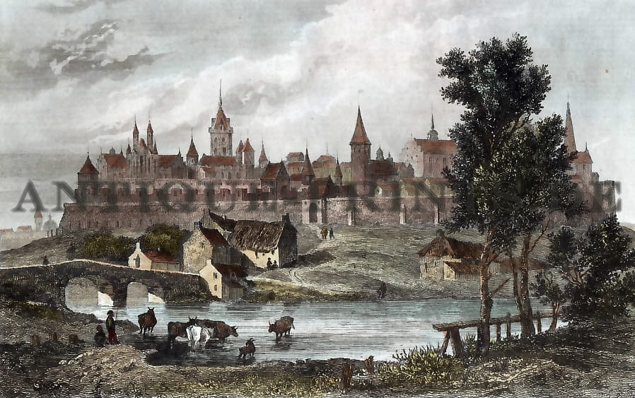 England. Original steel engraving drawn by W. H. Bartlett, engraved by W. Taylor. 1830. Very good condition. Hand-coloured. 14,5x9,5cm. Matted.
