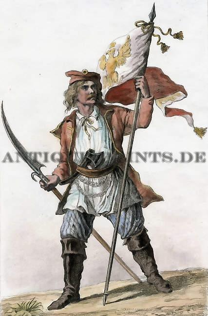 Militaria. Original steel engraving drawn by H. Vernet, engraved by A. Lefevre. 1848. Very good condition. Hand-coloured. 19x13,5cm. Matted.