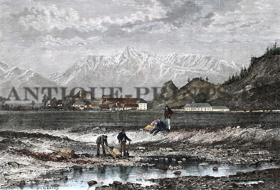 France. Original steel engraving drawn and engraved by J. Outhwaite. 1844. Good condition. Hand-coloured. 14x9cm. Matted.