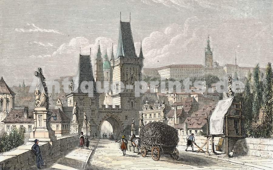 Czechia. Original lithograph, lithographed by C. W. Arldt after C. Müller, printed by F. Weider. ca 1845. Good condition. Hand-coloured. 22x14,5cm. Matted.