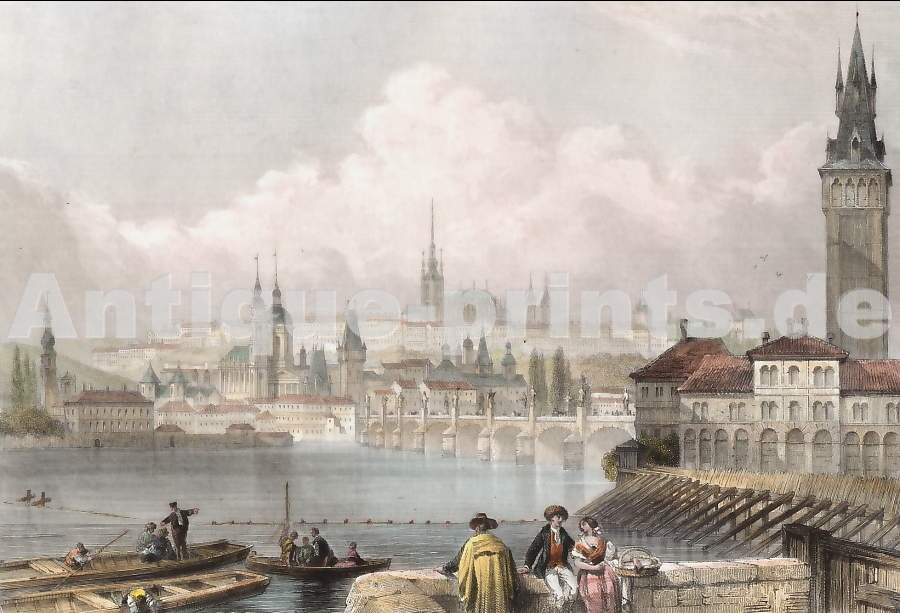 Czechia. Original steel engraving drawn by C. Würbs, engraved by J. Poppel. ca 1850. Very good condition. Hand-coloured. 13,5x10,5cm. Matted.