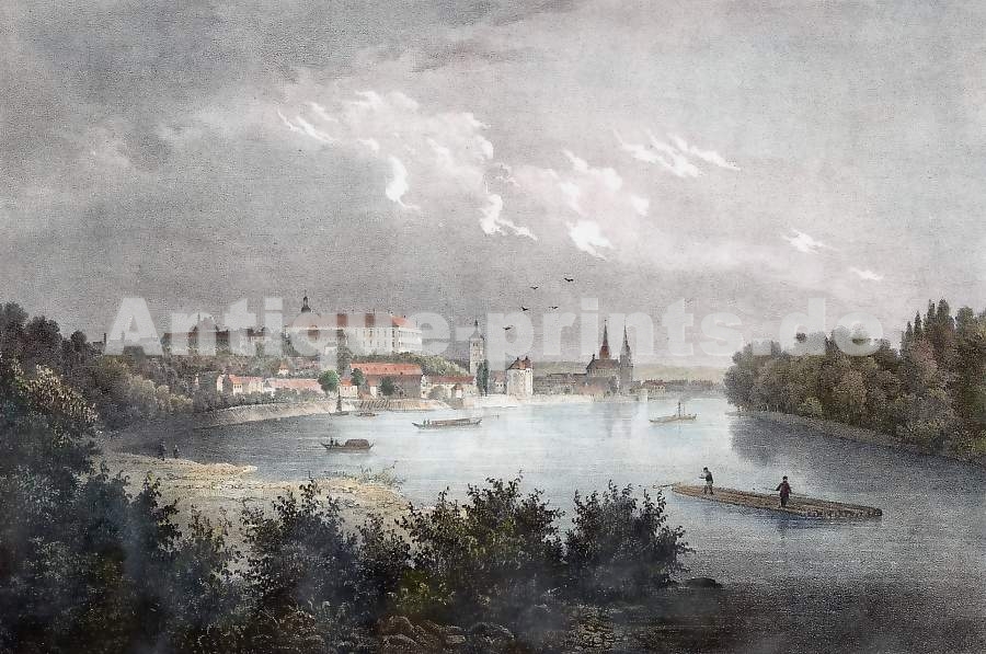 Czechia. Original wood engraving drawn by K. Girardet, engraved by Gusmann. 1863. Very good condition. Hand-coloured. 15,5x9,5cm. Matted.