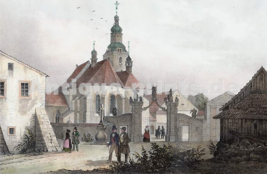 Czechia. Original lithograph, lithographed by C. W. Arldt after C. Müller, printed by F. Weider. ca 1845. Good condition. Hand-coloured. 22x14,5cm. Matted.