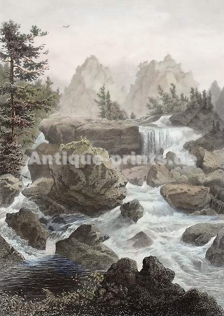 Italy. Original lithography, engraved by Renoux after A. Michallon. 1827. Good condition, small crease in the sky. On chine appliqué. Hand-coloured. 29x18,5cm. Matted.